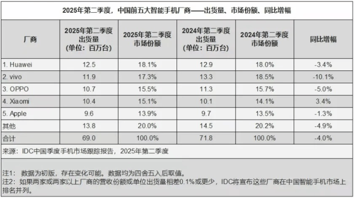 据资料显示,2022年魅族手机在中国市场的份额已经跌至1.3%的低位;而根据IDC中国手机市场跟踪报告显示,2025年第二季度魅族手机出货量被归为“其他”。多个品牌瓜分20%的市场份额,其中还包括相对强势一些的荣耀,魅族的生存压力不可谓不大。